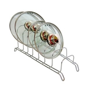 Przedmiotem aukcji jest prezentowany na zdjęciach stojak kuchenny na 7 pokrywek. Pozwoli w prosty sposób przechowywać pokrywki zawsze pod ręką np. na kuchennym blacie. Stojak wykonany z drutu stalowego. Powierzchnia chromowana zapewniająca długie użytkowanie.